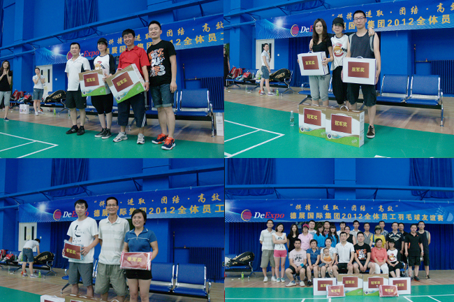 2012年6月16日14:00時(shí),“拼搏 進(jìn)取 團(tuán)結(jié) 高效”德展國際集團(tuán)2012全體員工羽毛球友誼賽在北京朝陽區(qū)華冠永波網(wǎng)羽中心開賽。此次活動(dòng)的目的是營造健康向上的企業(yè)文化;強(qiáng)身健體,打造一個(gè)團(tuán)結(jié)、朝氣、高效的團(tuán)隊(duì);增進(jìn)各位員工間的友誼、認(rèn)同及歸屬感。
