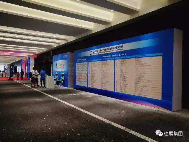 ? ? ? ? 德展集團在本屆高規格展會上負責世界機器人大會博覽會的主場運營和策劃設計搭建工作,我們克服了時間緊、任務重、各方溝通不很順暢的種種困難,加班加點,排阻克難,圓滿完成了主辦方賦予的各項工作使命。無論在場地勘察細節把控、方案策劃設計修改、運營預案演練打磨、團隊培訓應急處置等各個方面都表現出行業頂級專業水準,經受了考驗、鍛煉了隊伍,代表展覽界呈交上了一份完美的答卷。這次實踐將為德展集團的發展添上濃墨重彩的一筆。